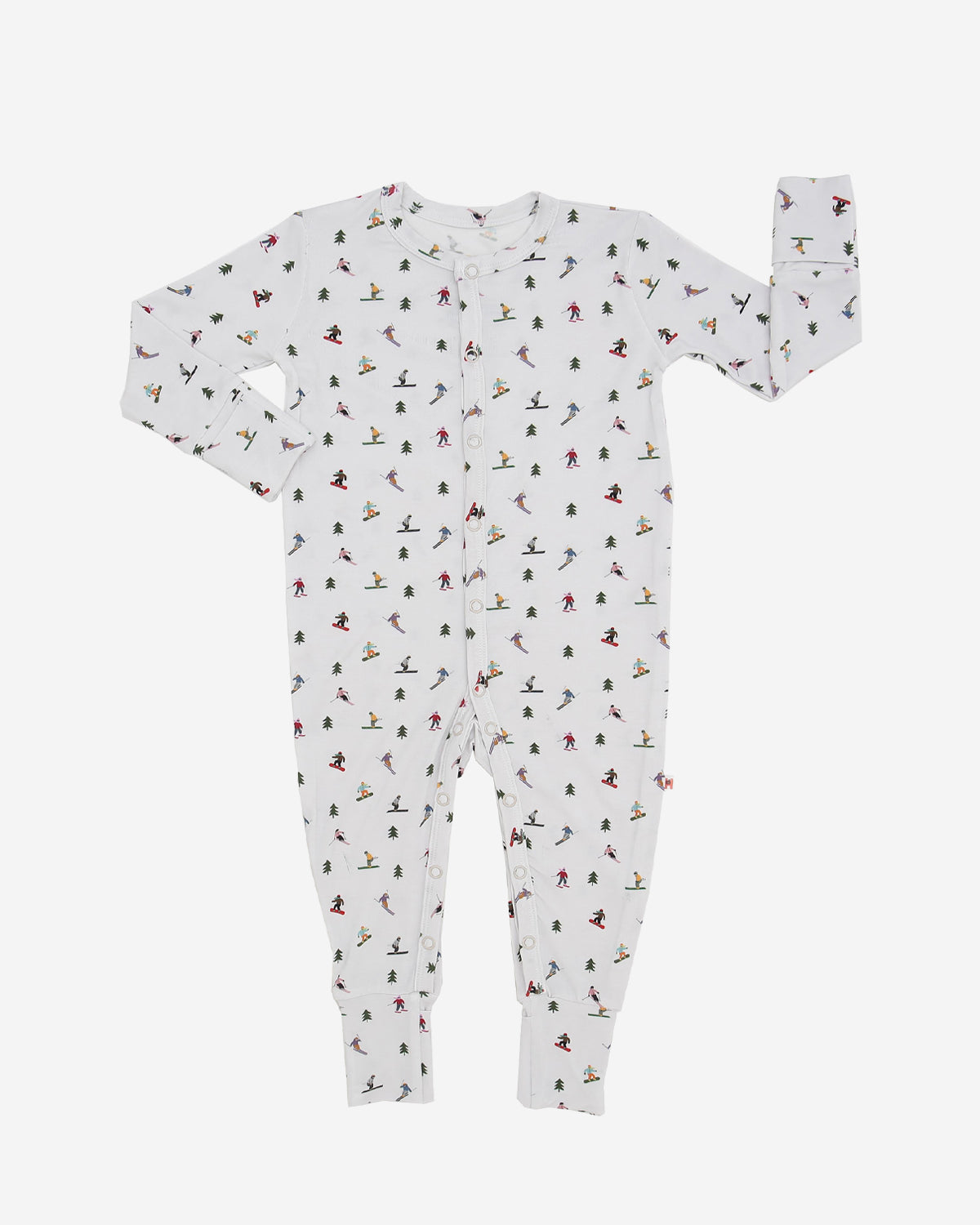 Crafted from our signature bamboo fabric, this breathable, stretchy one-piece is gentle on delicate skin and perfect for lounging, crawling, or cozy cuddles. With its playful gray ski print and easy, all-in-one design, this romper is a winter wardrobe essential for baby boys and girls on the move.