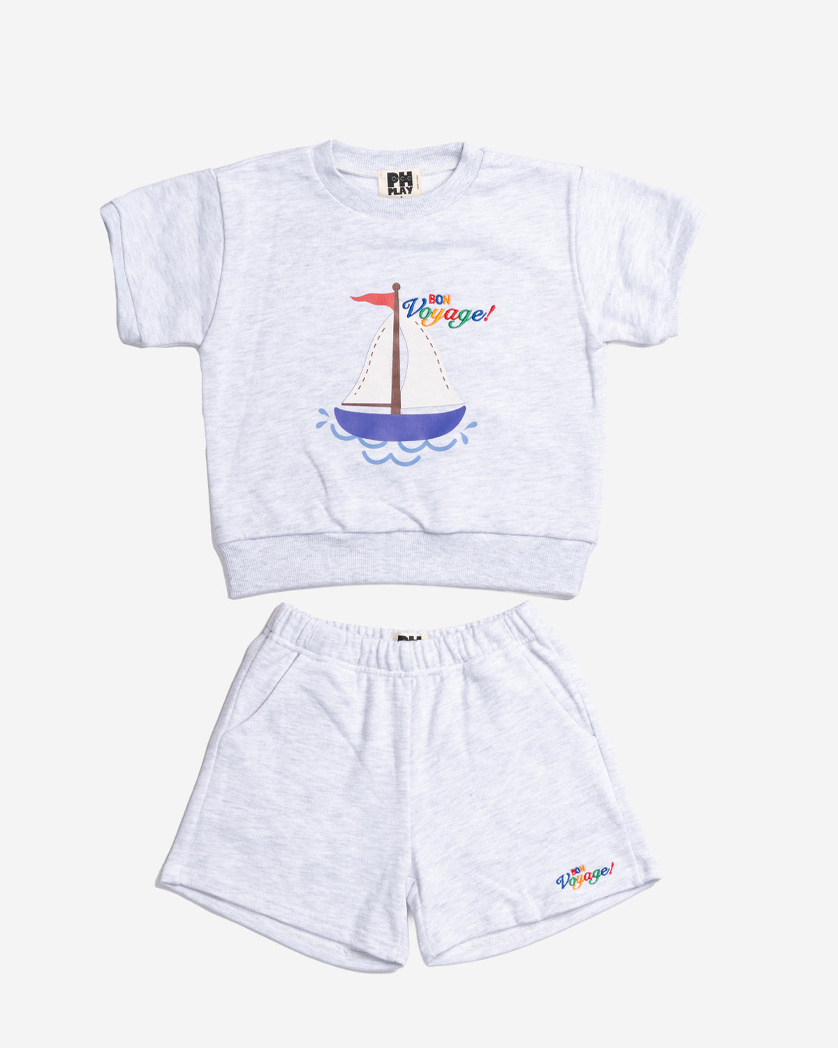 Embrace nautical elegance with the Cooper Marine Set in Light Grey. This charming two-piece features a sailboat design on the top paired with coordinating shorts. Perfect for beach days, poolside adventures, or casual summer wear, this set captures coastal style with timeless maritime details that bring sophistication to any wardrobe.