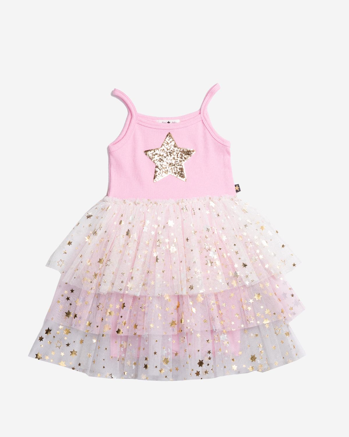 Meet our Nora 3 Layered Tutu where twirling dreams come true! This enchanting pink tutu features three gorgeous tiers of shimmering tulle that float with every spin and leap. The matching tank top sparkles with our signature gold sequin star, while the skirt is sprinkled with delicate gold stars that catch the light beautifully. Perfect for little dancers, dreamers, and anyone who believes in a little everyday magic. Twirl, shimmy, and shine!
