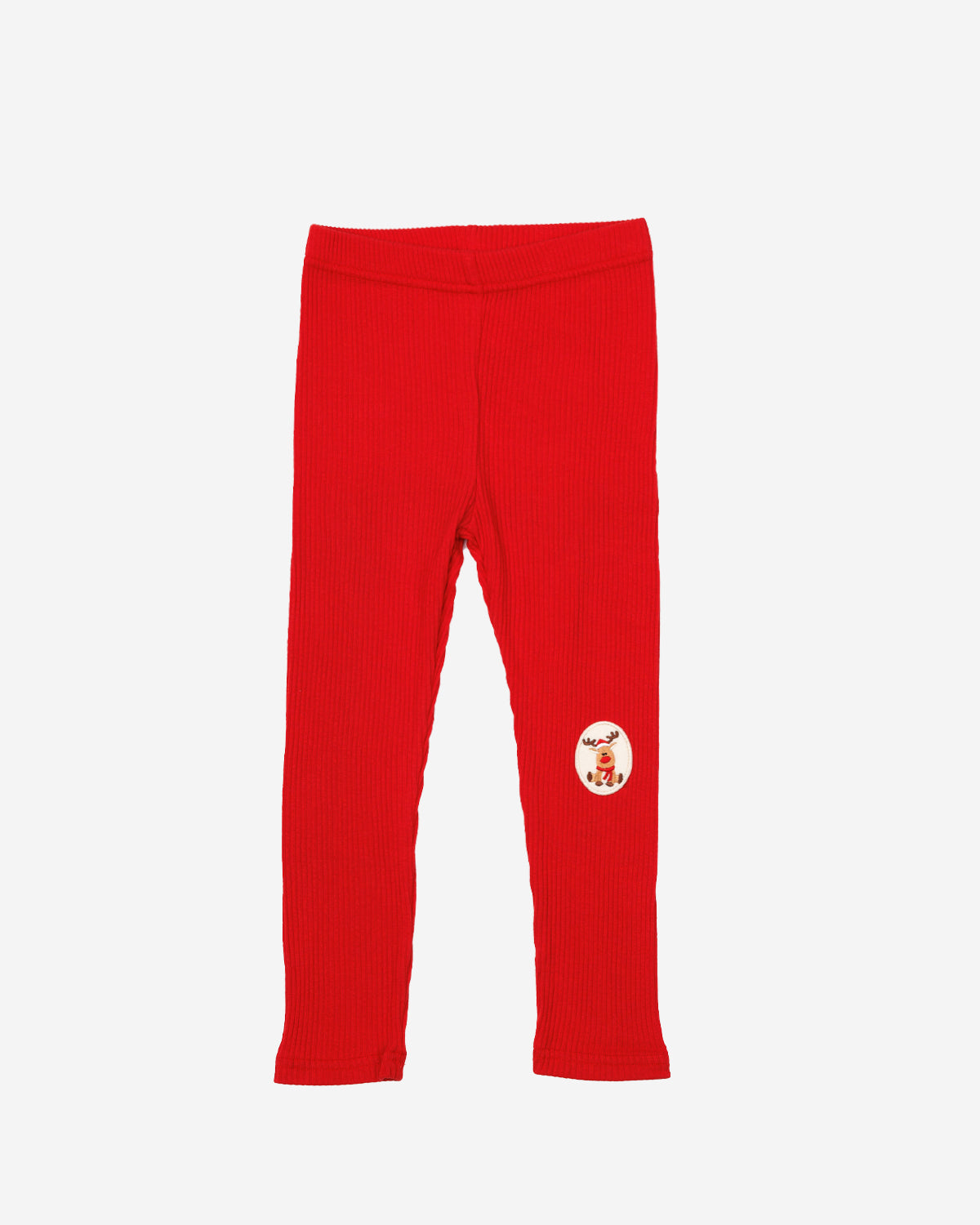 Add a touch of holiday cheer to everyday comfort. Our Ribbed Patched Leggings are made from a soft, stretchy knit that moves easily with your little one. A sweet reindeer patch on the knee brings a playful festive detail, perfect for the season. Pair them with a cozy sweater for an effortlessly cute winter look.