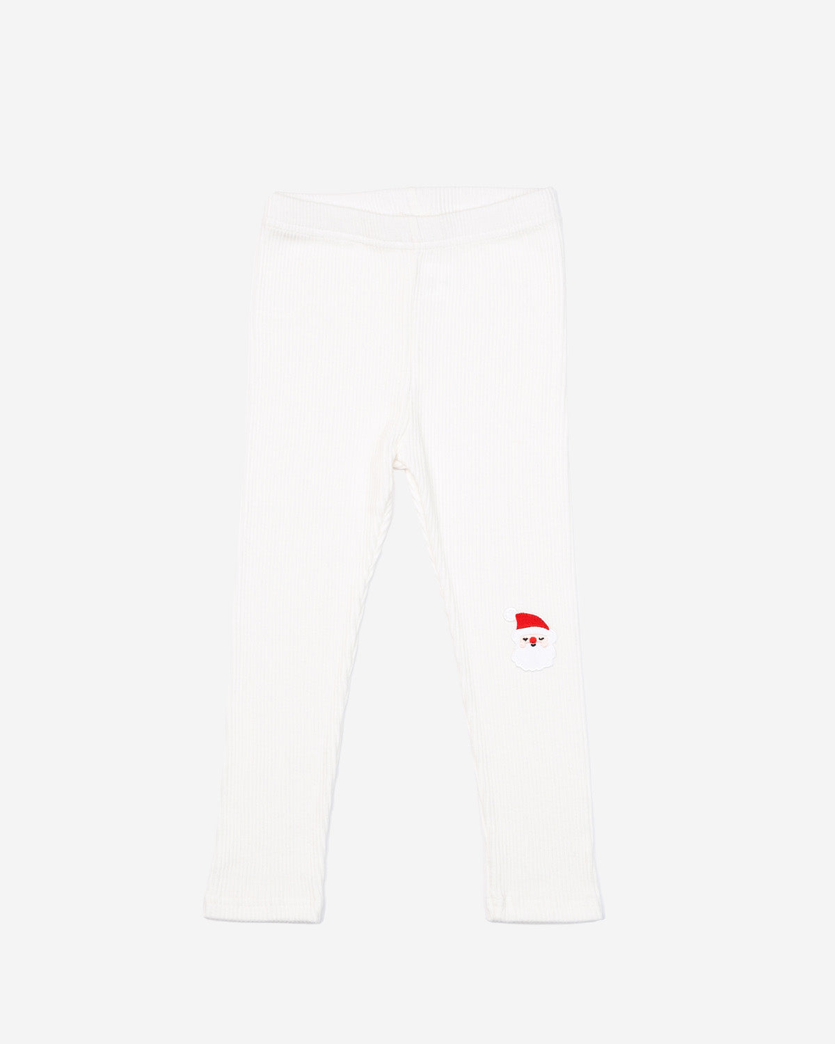 Classic, cozy, and full of holiday spirit. These ribbed leggings are made from a soft, stretchy fabric for all-day comfort and easy movement. A cute Santa patch on the knee adds a playful festive touch perfect for pairing with a holiday top or sweater.