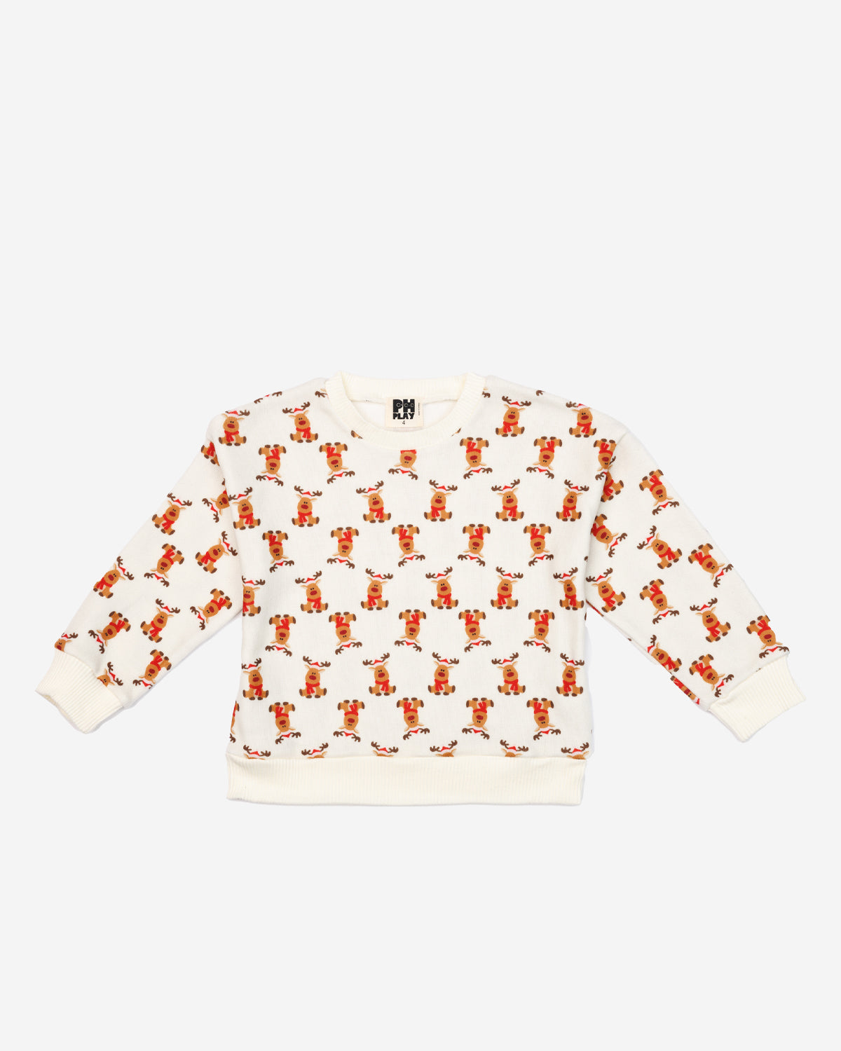 Keep her cozy and festive all season long in our Microfleece Printed Sweatshirt! Crafted from ultra-soft microfleece in a warm cream hue, this comfy pullover features an adorable reindeer print that brings instant holiday cheer. Perfect for layering, lounging, or adding a touch of merry magic to every day.Â