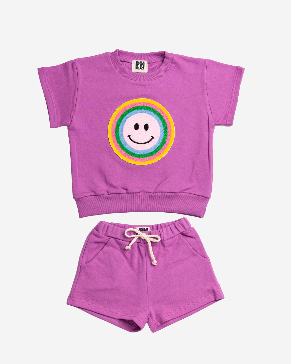 Brighten any day with our Smile Max Set in Purple. This charming two-piece collection features a playful smiley face patch on the top, adding a cheerful touch to your wardrobe. Perfect for casual outings or relaxed weekends, the soft purple tone pairs effortlessly with your favorite pieces. Comfortable, versatile, and full of personality a must-have for anyone who loves a little extra joy in their style.